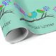 Social Worker Gift Wrap, vintage Birds on a gren design.