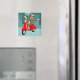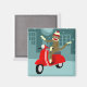 Kolla in sock monkey rider på sin röda vintage och ge dig en våg hej! Denna illustration från sock monkey skulle vara underbar för Vespa och fläkt som är apa.