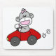 En sock monkeyflicka kör lite av i henne den röda sportbilen!