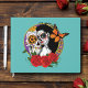 En sockerskalle bakom en kvinna som bär på day of the dead-sockelskalle. Art nouveau stil.