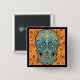 Det här är en dekorativ sockerskull med Marigold Flowers, Blue Daises och Sol som lyser på ett lysande sätt.