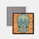 Det här är en dekorativ sockerskull med Marigold Flowers, Blue Daises och Sol som lyser på ett lysande sätt. Skullet är inställt på bakgrunden Marigold Flowers.