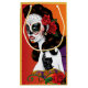 Sockerskalle day of the dead fairy med lila vingar. Röd ros och monarch-fjärilar i en solnedgång av rött, orange och gult