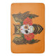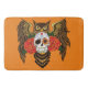 En brun underbar hornsklubb uggla med en day of the dead-sockerskalle och röd ros i en bakgrund av orange.