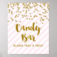 Sockerbarskylt affisch för babyfest, bröllopsfest eller bröllop i ljust pastellrosa och vita ränder mönster med guldkonfetti och handskriven stil bokstäver. Perfekt för en babyfest, bröllop eller bröllopsfest.