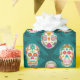Alla tillfälle-inslagna pappra har Dia De Los Muertos eller Mexikanska Day of the dead stil med färgstarka döskallar för socker mot en tealkontrollerad bakgrund som accentueras med illustrationer av snöre.