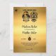 Svart sockerrör döskallar bröllop med spindlar på guld. Halloween-bröllopsinbjudan