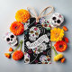 En färgstark presentdesign för högtider i Day of the dead, med en mängd dekorativa döskallar av socker med blommor och virvelaccenter på en svart bakgrund som tillval. Om ni så föredrar kan texten "Feliz Dia de los Muertos" i lagrar strykas för en formgivning som endast omfattar mönster. Sök i ID725 om du vill se andra alternativ och produkter för färg med roligten mönster.