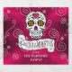 En färgstark etikett för högtider i Day of the dead, med en mängd dekorativa döskallar av socker med blommor och snurrande accenter på en texturerad ro-röd bakgrund. Den vita banderollen, som innehåller texten "Feliz Dia de los Muertos", är valfri och kan strykas för använda av etiketten för andra tillfälle. Sök i ID725 om du vill se andra alternativ och produkter för färg med roligten mönster.