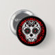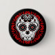 Min version av en söt toppen sockerskalle i vitt, rött och svart med många eleganter på en koordinerande bakgrund. Visas här på en knappnål.