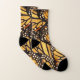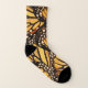 Dessa sockor presenterar en design av älskvärda monarkfjärilar (Danausplexippus) i färger av orangen, gult, guld, svarten, bruntet och vit. Den sagolika teckningen liknar ett konstnärligt abstrakt mönster. En vilken underbara idé för en entomologist- eller fjärilsentusiast!