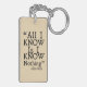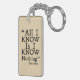 En keychain som presenterar ansiktet av Socrates, fadern av filosofi och hans berömda citationstecken "allt som jag vet, är att jag vet ingenting".
