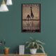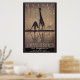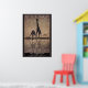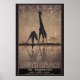 Två giraffer dricker vid ett vattnande hål. Denna klassiska konst poster reklam för sydlig Afrika.