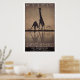 Två giraffer dricker vid ett vattnande hål. Denna klassiska konst poster reklam för sydlig Afrika. Ett perfekt som tillägg till någon dekorfärg.