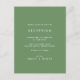 Det här sydliga klockblocket koordinerar bröllopsmottagningskortet är perfekt för ett modernt bröllop. Den enkla designen har klassisk minimalistisk typografi med en rustik boho-känsla på gröntens bakgrund. Anpassade i alla färg.