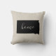 Visa upp er stolthet över hemstaten med den här chicen moderna hemstaten dekorativ kudde som innehåller er stats karta-silhuett och ord HOME skriven inuti. Bakgrund till Faux burlap canvas struktur (lägg märke till att kuddar inte är gjorda av brännmaterial). Klicka på knappen Anpassa om du vill lägga till din egen text och markera från hela vår kudde stilar om du vill skapa din egen unika design av ett slag!