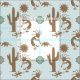 Roligt sydvästra mönster med Kokopelli som spelar flute, cactus, lizards och armadillo under ett stiliserat sol. Aqua Blue-bakgrund. Design är en del av samlingen för pastellerna i sydvästra England. De viktigaste förhandsgranskningarna avspeglar inte det faktiska färg (färg ser ut att vara förskjutet i dem). Om du vill ha en mer exakt bild av den här designen klickar du på slutalternativet i förhandsvisningen av plattan.