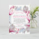 Fantastiskt sött rosa magnolia-blommar bröllopsinbjudningar med vit bakgrund. Texten är grått och rosa. Detta är perfekten för chic och elegant södra bröllop!