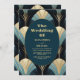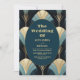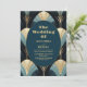 Sofistikerad Blue and Guld Art Deco Bröllop Inbjudningar