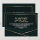 Denna stilrena och eleganta guldinfattade skoggröna överraskningsinbjudan till 80-årsfirande är perfekt för dem som vill göra ett statement och sätta tonen för sin semi-formella eller svart-tie-fest. Den gröna bakgrunden ger en snygg och sofistikerad look, medan den gyllene ramen tillför precis rätt mängd glamour och elegans.