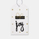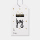 Enkel och sofistikerad svart och guld med en båge och svart text Joy i ett retroteckensnitt. Till och från lämnat tomt för att du ska kunna skriva på hemma, eller välj Anpassa för att redigera texten. Sofistikerad men enkel svartvit bild och vinterbild av guld med en modern reflex för att skapa en glatt påstående på varje present den här julhelgen.