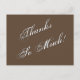 Denna sofistikerade och exklusiva tacksamhets-vykortdesign har meddelandet "Tack så mycket!" på framsidan, tillsammans med ett anpassningsbart meddelande på baksidan. Det kan användas för att tacka någon som har gjort något speciellt.