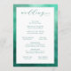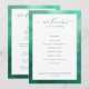 Det här bröllopsprogrammet har en ren, modern design med en mjuk teal-färgad övergångskant som ramar in en skarp vit mitt. Layouten är minimalistisk och betonar elegans genom rikligt med negativt utrymme och sofistikerad typografi. En flytande scriptfont välkomnar gästerna högst upp, medan feta rubriker i sans-serif organiserar ceremonidetaljerna i en lättläst serifstil. Anpassningsbara platshållare för namn och datum möjliggör personlig anpassning, vilket gör det perfekt för par som söker en lugn men ändå stilren estetik för deras speciella dag.