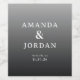 Denna eleganta etikett för bröllopsvin har en minimalistisk design med en övergångsrik bakgrund som går från ljust till mörkgrått. Den rena, serif-typsnitten är arrangerade i en balanserad vertikal layout som betonar sofistikation och formalism. Anpassningsbara textfält möjliggör personlig anpassning av namn och datum, vilket gör den perfekt för att fira din speciella dag. Den återhållna elegansen och den gråskaliga färgpaletten skapar ett tidlöst utseende som är idealiskt för bröllop eller formella firanden.