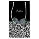 Anpassa genom att lägga till namn från en liten flicka till denna sofistikerade svarta och vita leopardtryckpåse med ett band av eleganten som är bundet till en feminin-butik. Den här snyggten är en plan tryckt bild som inte innehåller det egentliga menyfliksområdet.