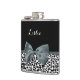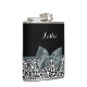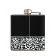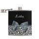 Anpassa genom att lägga till namn från en liten flicka till denna sofistikerade svarta och vita leopard skriver ut 6 oz kolv med ett band av eleganten som är bundet till en lårbenbåge. Den här snyggten är en plan tryckt bild som inte innehåller det egentliga menyfliksområdet.