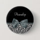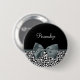 Anpassa genom att lägga till namn på en liten flicka till denna sofistikerade tryckknapp för svart och vitt leopard med ett band för elegant som är bundet till en lårbenskur. Den här snyggten är ett djur som skrivs ut i namn bricka och som inte innehåller det faktiska menyfliksområdet.