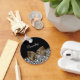 En sofistikerad flicka i mode skulle kärlek få sin personlig i namn på detta trendig, svart och vit leopard-trycknyckelkedja med en mörk i elegant, brun band bunden i en chic båge. Platt utskriven bild, inte egentligt menyfliksområde.