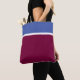 Den här eleganta chicen har en bred, blå överdel av rand, skisserad i vitt, ovanför ett dynamiskt färg-block som fyller resten av designen.