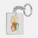 This double-sided keychain design showcases organic, overlapping watercolor shapes in warm amber, rust, and teal hues, outlined delicately in gold. Its soothing abstract form evokes calm and elegance, perfect for modern accessories.