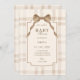 Soft beige brown bow tartan plaid baby shower inbjudningar