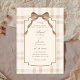 Soft beige brown bow tartan plaid wedding inbjudningar