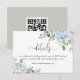 This Soft Blue Botanical Website QR Code Details Enclosure Card template offers a modern and elegant way to share important wedding information, beautifully designed with soft blue botanical florals and delicate greenery for a fresh and sophisticated aesthetic. The gentle blue tones paired with subtle botanical accents create a clean and cohesive look, while the integrated QR code allows guests to easily access your wedding website, schedules, and additional details. Featuring a well-organized and stylish layout, this fully editable template lets you customize all content to match your theme. Ideal for both print and digital use, it enhances your invitation suite with convenience and contemporary charm.