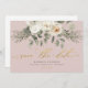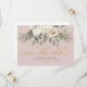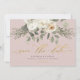 Utformningen har en vacker medley av mjuk blommigt och en smutsig grey av korall, elfenben, champagne och sage, inramad i en dammig grönt botanisk löv mot en dammig rosa bakgrund - allt för dina kommande ceremonier i bröllop och speciella evenemang. Det finns en liten bit guld i det Sparat datumet i ett kalligrafiskt skript som tillsammans med mjuk bukett framkallar en romantisk känsla av att vara. Anpassa enkelt med namn och bröllop-datumet. Kortet kan paras med bröllop-sviten i vår samling: Soft Blommigt Botanical Foliage.