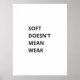 This striking, clean, and minimalist design features the powerful and inspiring phrase: "SOFT DOESN'T MEAN WEAK."