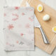 A soft kitchen towel featuring a delicate floral pattern in blush and neutral tones.