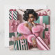 This elegant illustration features a stylish fashion diva surrounded by beautifully wrapped gifts, pearls, and designer shopping bags. Draped in a plush pink fur coat with sparkling jewelry and flawless vintage curls, she embodies the energy of luxury shopping, feminine confidence, and the soft life aesthetic.