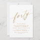 Enkla men-elegant 40-årsinbjudningar med rubriken "fyrtio" text i ett skriptteckensnitt. Faux guld på en mjölvit bakgrund. Observera: Guld-effekten replikeras av en högkvalitativ grafik. Ingen riktig folie kommer att användas.
