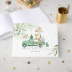 Den här fina designen har elegant vattenfärgsgrej, söta safari-djur och festlig grönt och guld-ballonger. Anpassa ordalydelsen till att säga vad du vill!