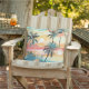 Soft palm silhouettes and layered ocean tones form a dreamy tropical sunset pattern in calming pastel hues. Ideal for relaxed coastal styling across apparel and home décor.