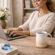 Sunrise-inspired neutral design in taupe and ivory. This white ceramic mug features a soft wrap gradient rising from warm taupe to light ivory, finished with subtle serif “Faded Light” lettering near the base. Ideal for morning coffee on a bright kitchen counter or styled into a light, modern desk setup.