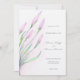 Bröllopsinbjudan med elegant delikat bouquet från mjuk lila abstrakt lilja blommor och ljust grönt löv, pastel färgad vår eller sommarmjukhet romantisk blommigt lilies bouquet. Söta blommor, botaniska digitala vattenfärger och teckning-lackering med blyertspenna. Cute blommigt blommar botany bröllopsinbjudan. Soft Lila Lilies Collection.