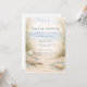 A refined coastal bridal shower design featuring an elegant oval wreath of seashells, oyster shells, starfish, and soft sea glass accents. Neutral sandy tones blend with muted ocean blues and delicate dune grasses to create a serene seaside aesthetic. The airy parchment background enhances the natural textures while maintaining a graceful, elevated look. Perfect for a beach-inspired celebration with timeless coastal charm.