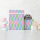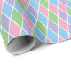 This fun geometric pattern, a traditional harlequin arrangement of diamond shapes, is colored in a soft pastel theme with pink, blue, green, and purple. The pale color scheme works well for birthdays, baby showers, or everyday gifts.