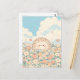 Brighten someone’s day with this charming hedgehog postcard. This sweet illustration features a round, blushing hedgehog peeking through a dense meadow of soft peach, cream, and apricot wildflower bloom. Set against a gentle blue sky filled with billowy, fluffy cloud, the watercolor textures and whimsical vibe make it a perfect choice for a heartfelt note to any nature lover. The warm, pastel palette gives this piece a cozy, comforting feel that is sure to stand out in any mailbox.