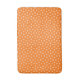 A vibrant, retro-inspired floral pattern featuring soft peachy-beige small flowers evenly spaced across a rich orange background. Each flower is surrounded by tiny dots.